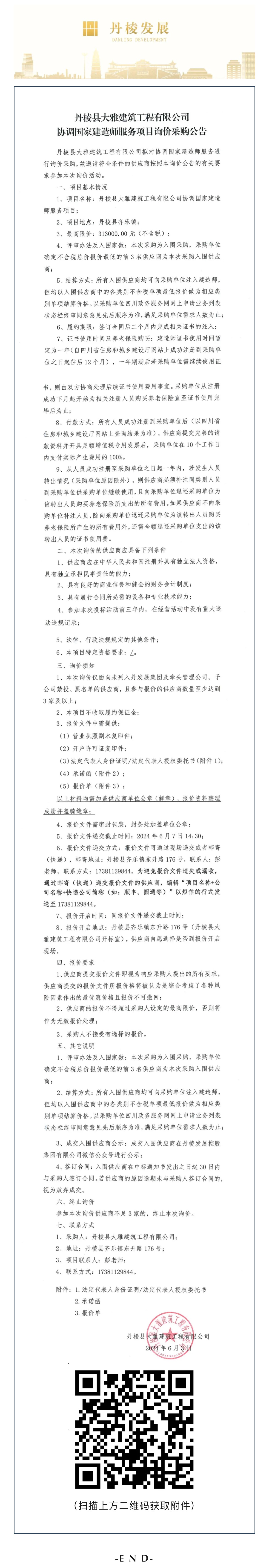 丹棱縣大雅建筑工程有限公司協(xié)調(diào)國家建造師服務(wù)項(xiàng)目詢價(jià)采購公告