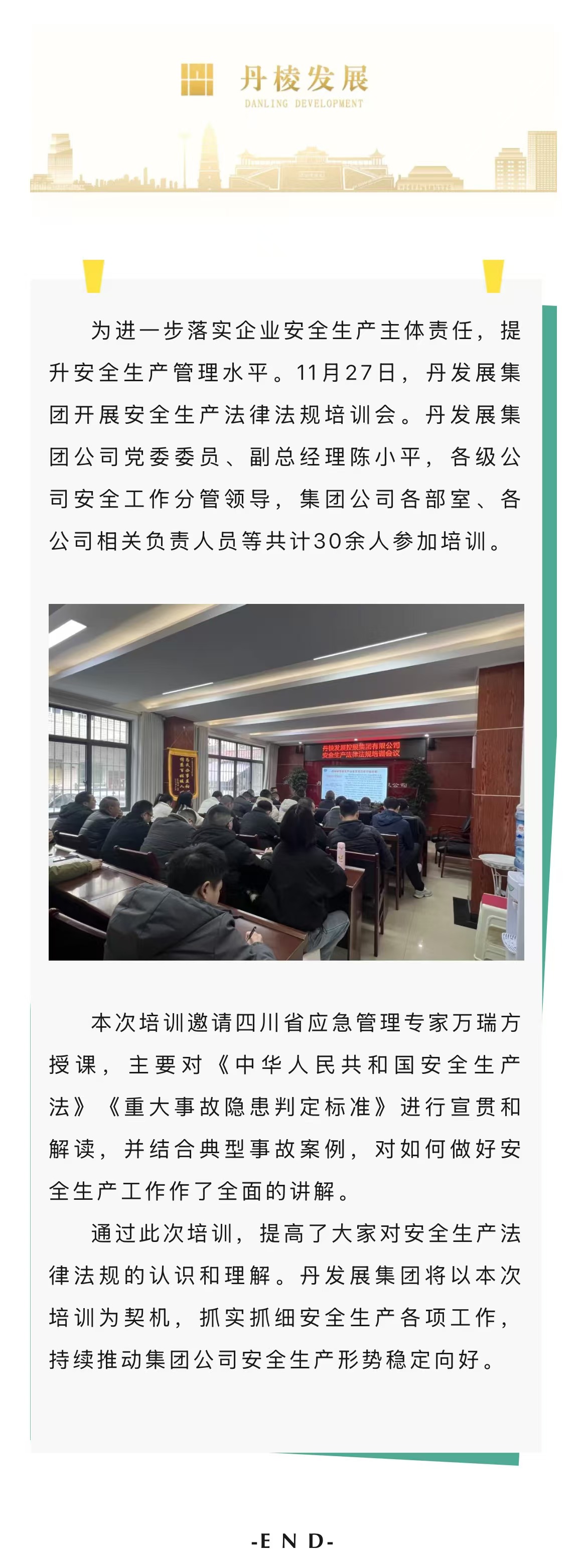 強(qiáng)化安全法律意識,筑牢安全生產(chǎn)基石丨丹發(fā)展集團(tuán)公司開展安全生產(chǎn)法律法規(guī)培訓(xùn)會
