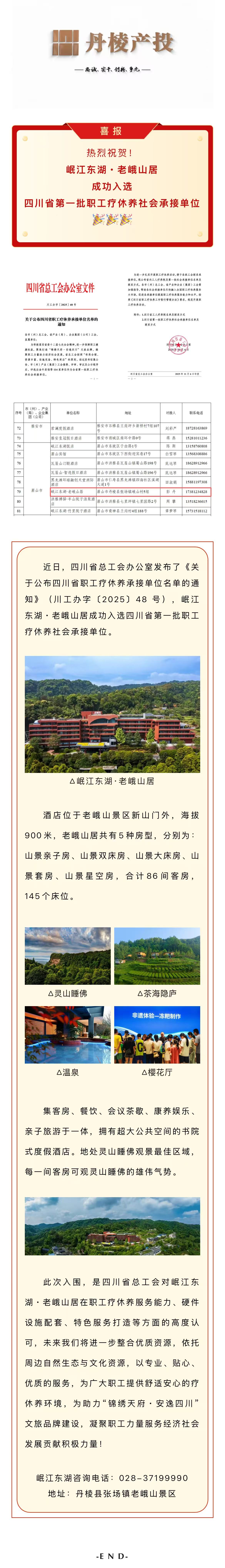 【縣文旅公司】喜報(bào)!岷江東湖・老峨山居入選四川省第一批職工療休養(yǎng)社會(huì)承接單位名單!